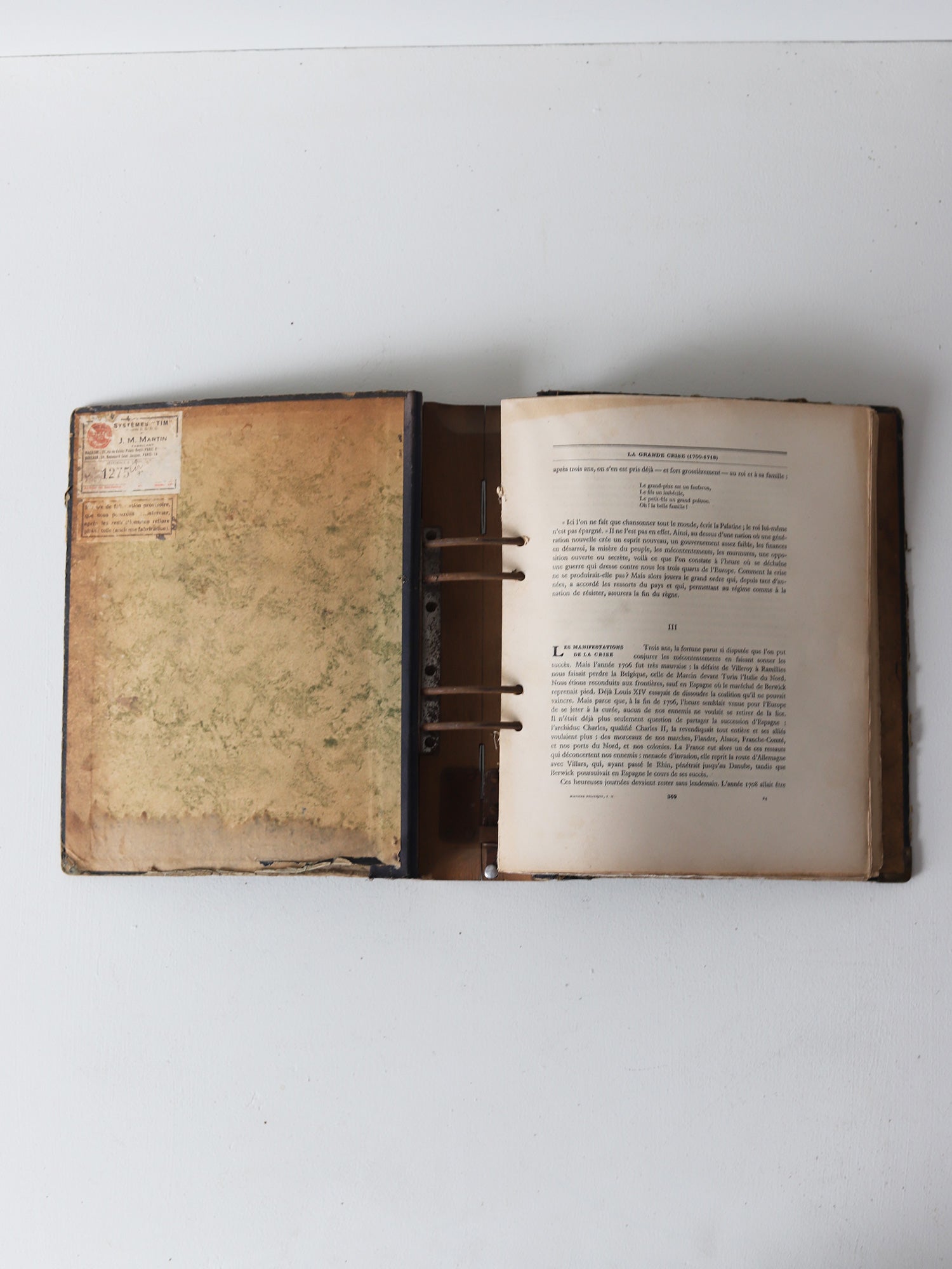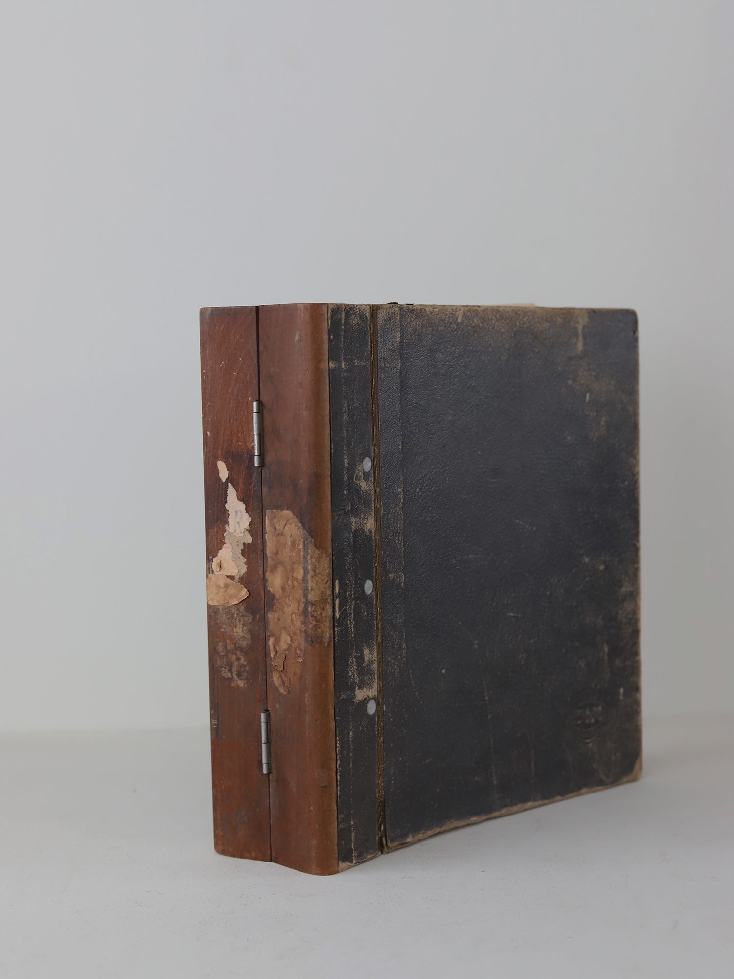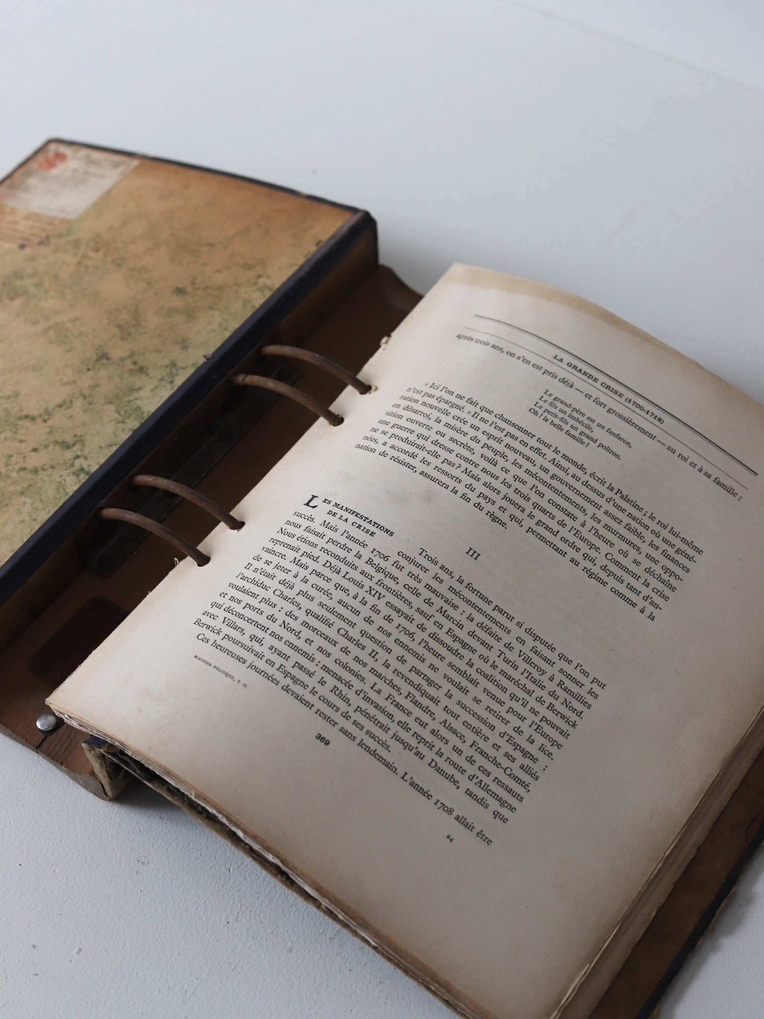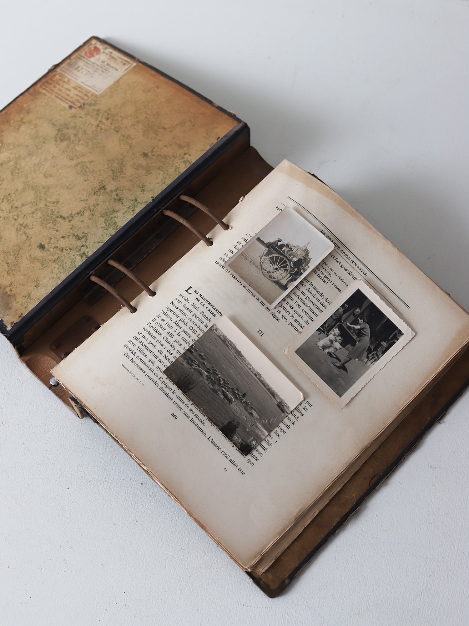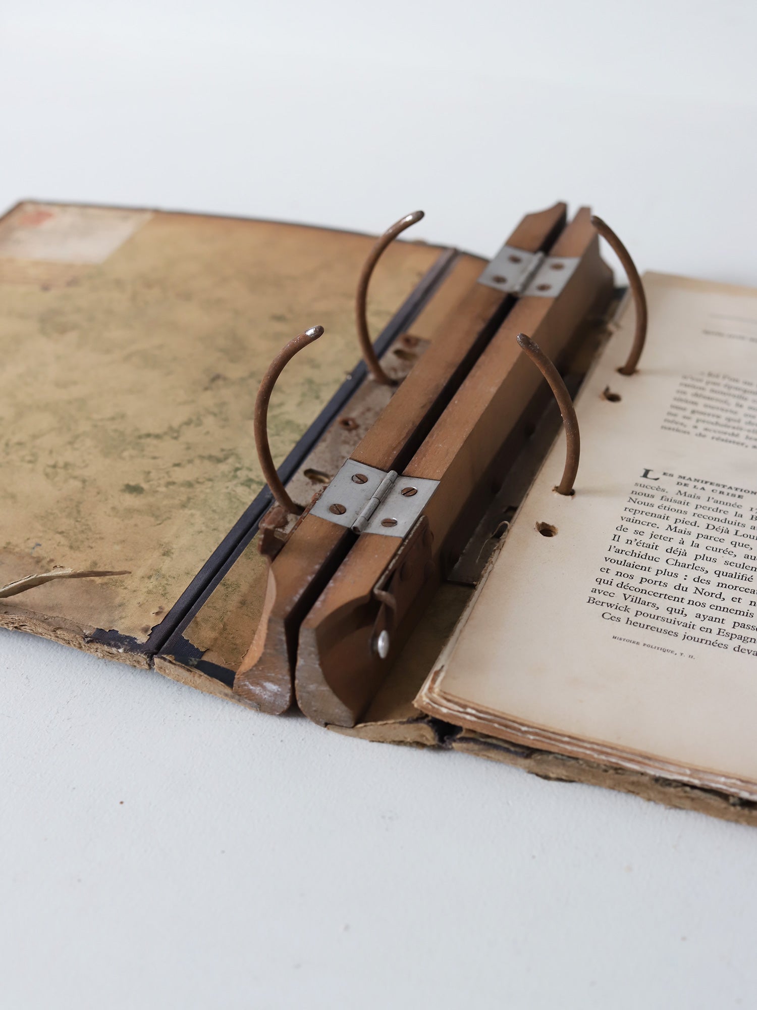 ベルギーで見つけた木のファイル。とても渋いです。中に本の一部を挟み込みましたのでスクラップブックのように使って、写真や切り抜きなんかを挟みましょう。