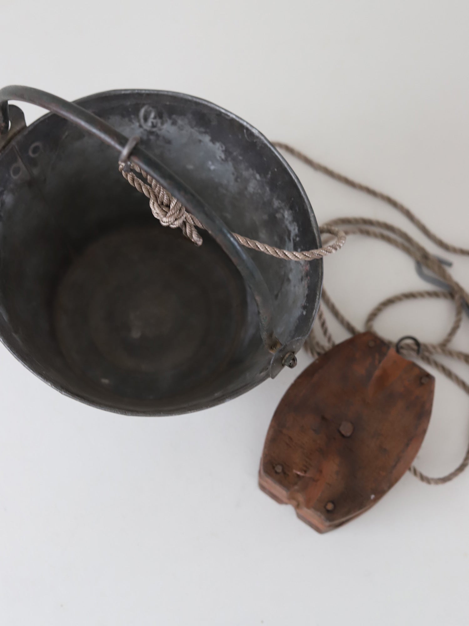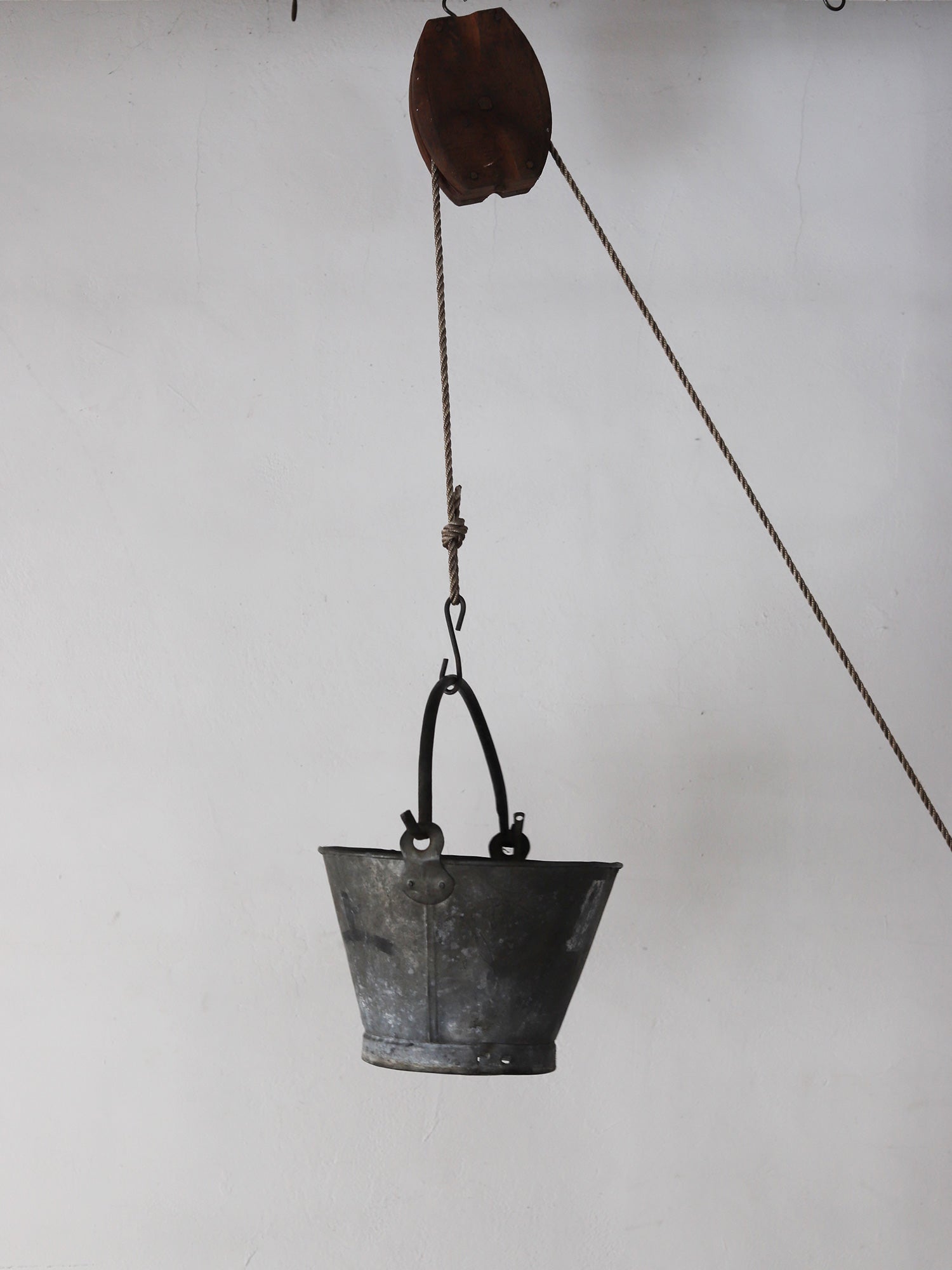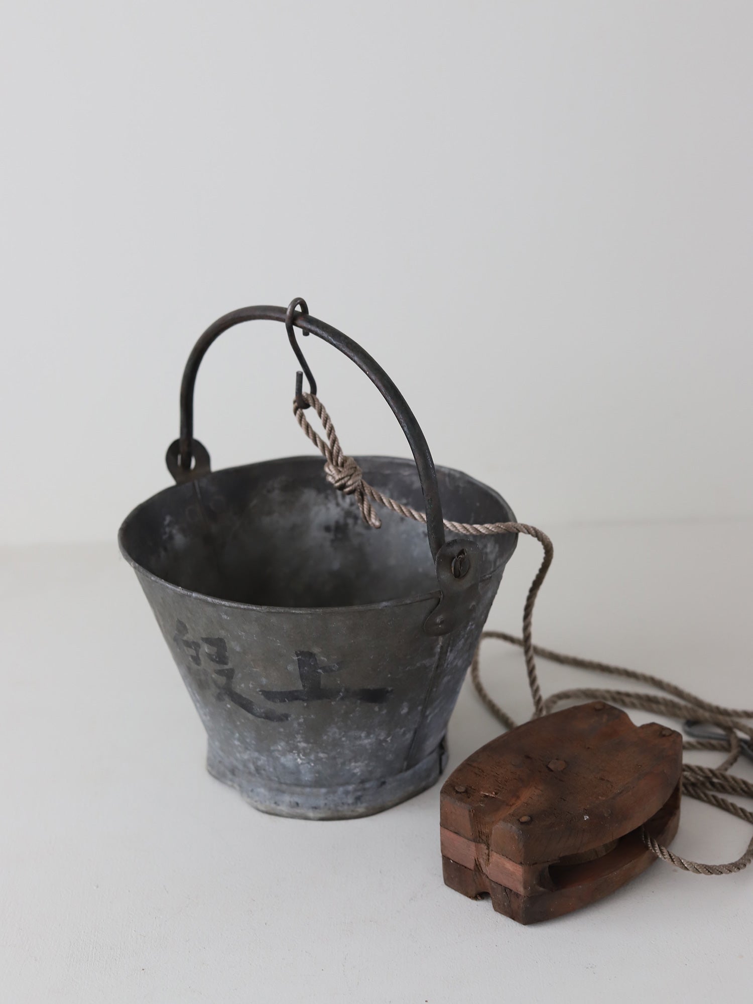 日本のバケツと木製滑車。いや、こうなってると、とてもかわいいよこれ!お風呂場とかにどう?