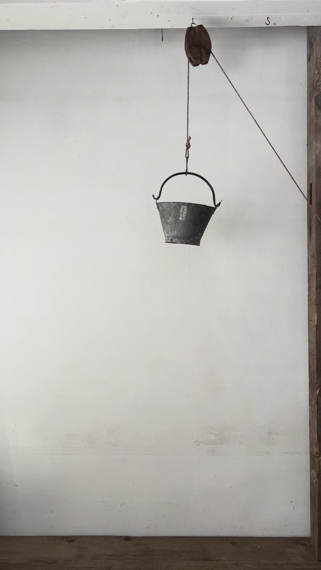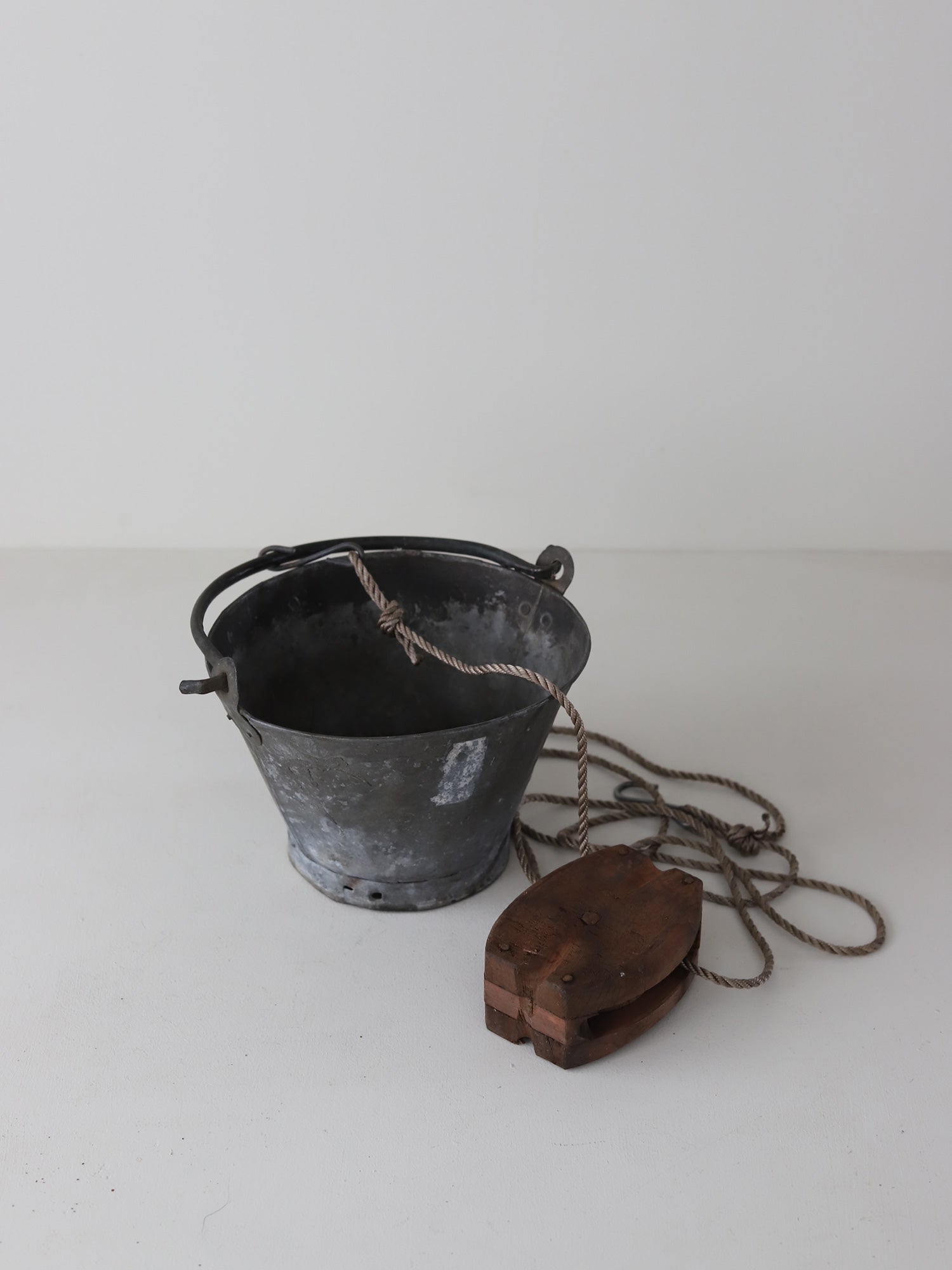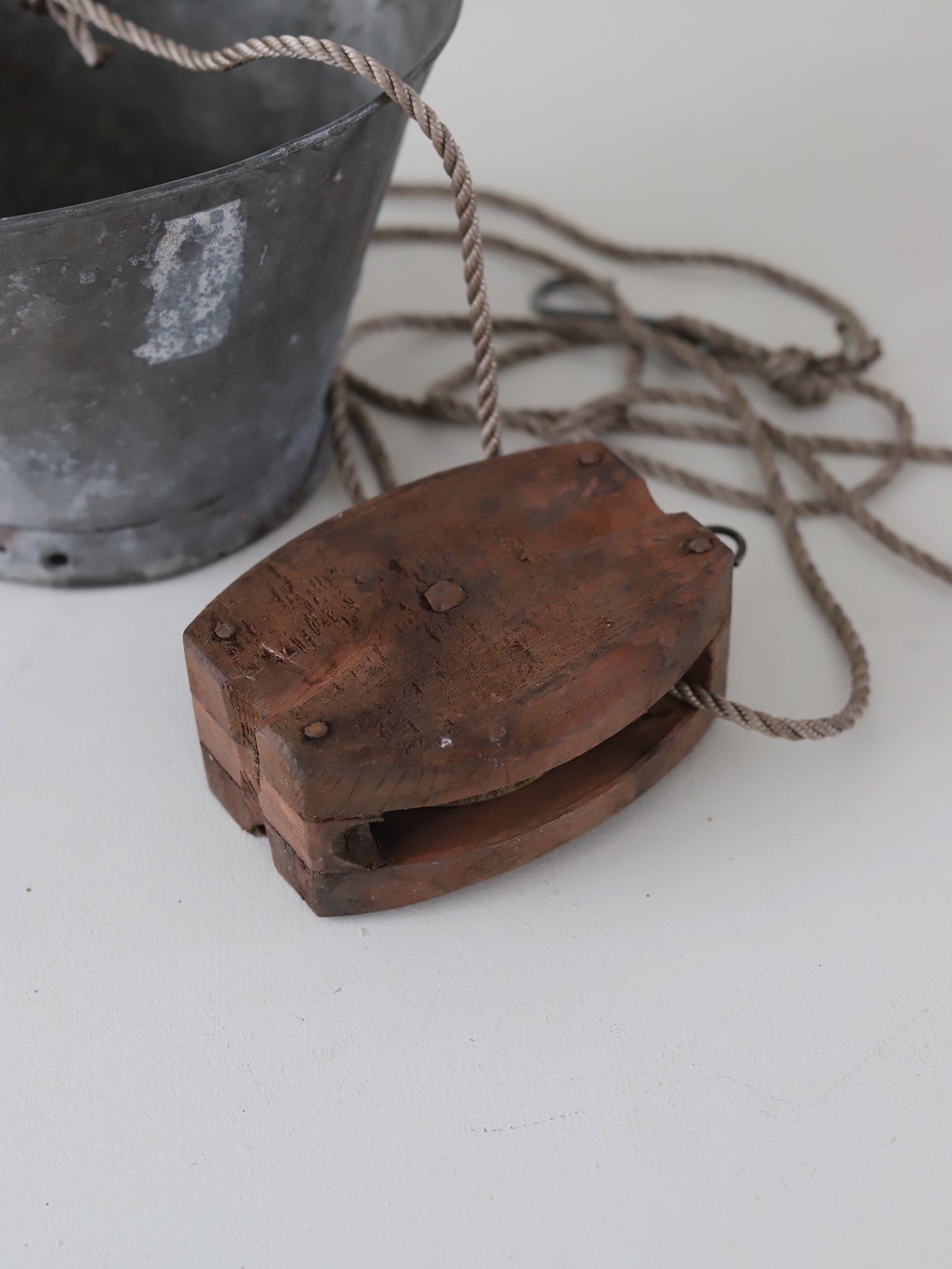 日本のバケツと木製滑車。いや、こうなってると、とてもかわいいよこれ!お風呂場とかにどう?