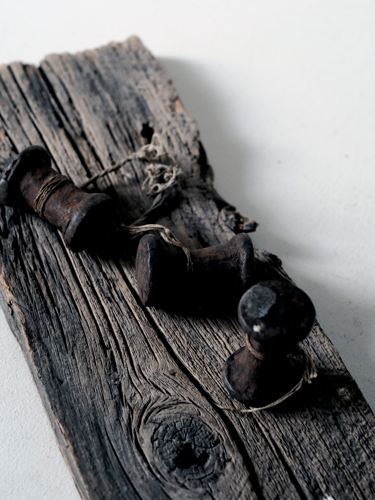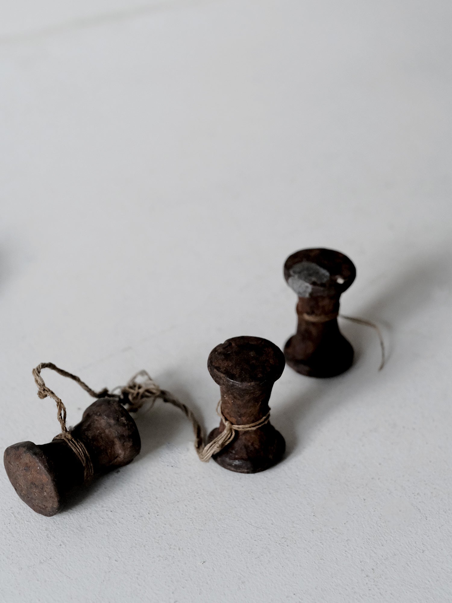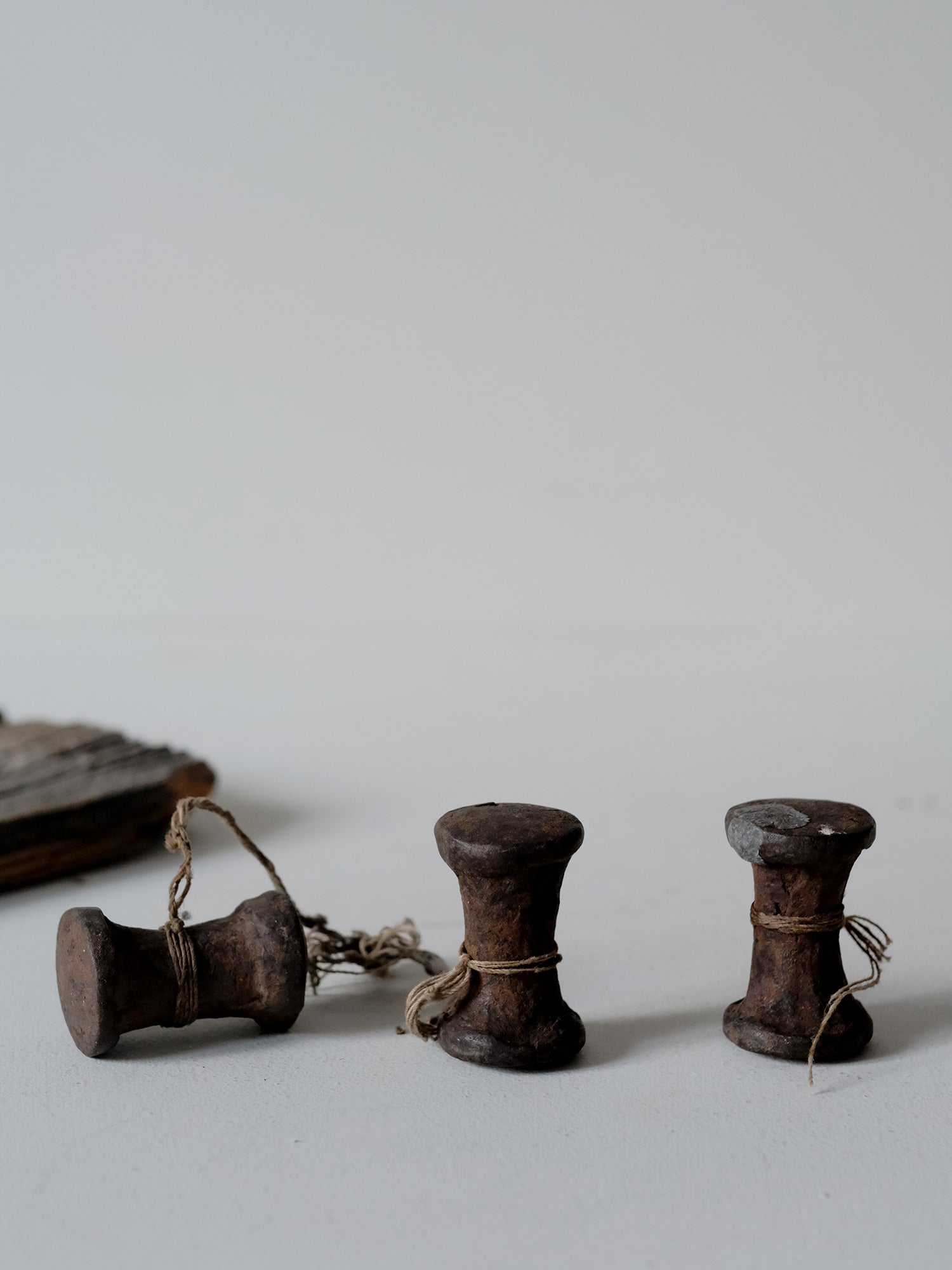 糸巻きのような形で、細い紐で繋がれてるのもまた渋い。