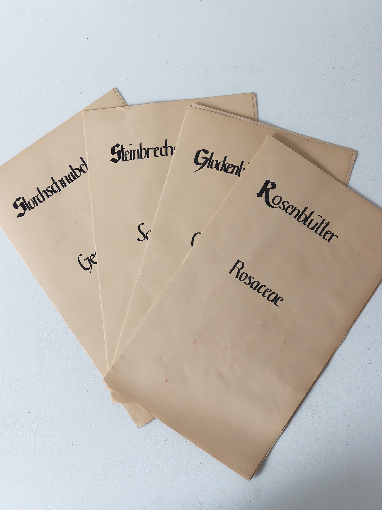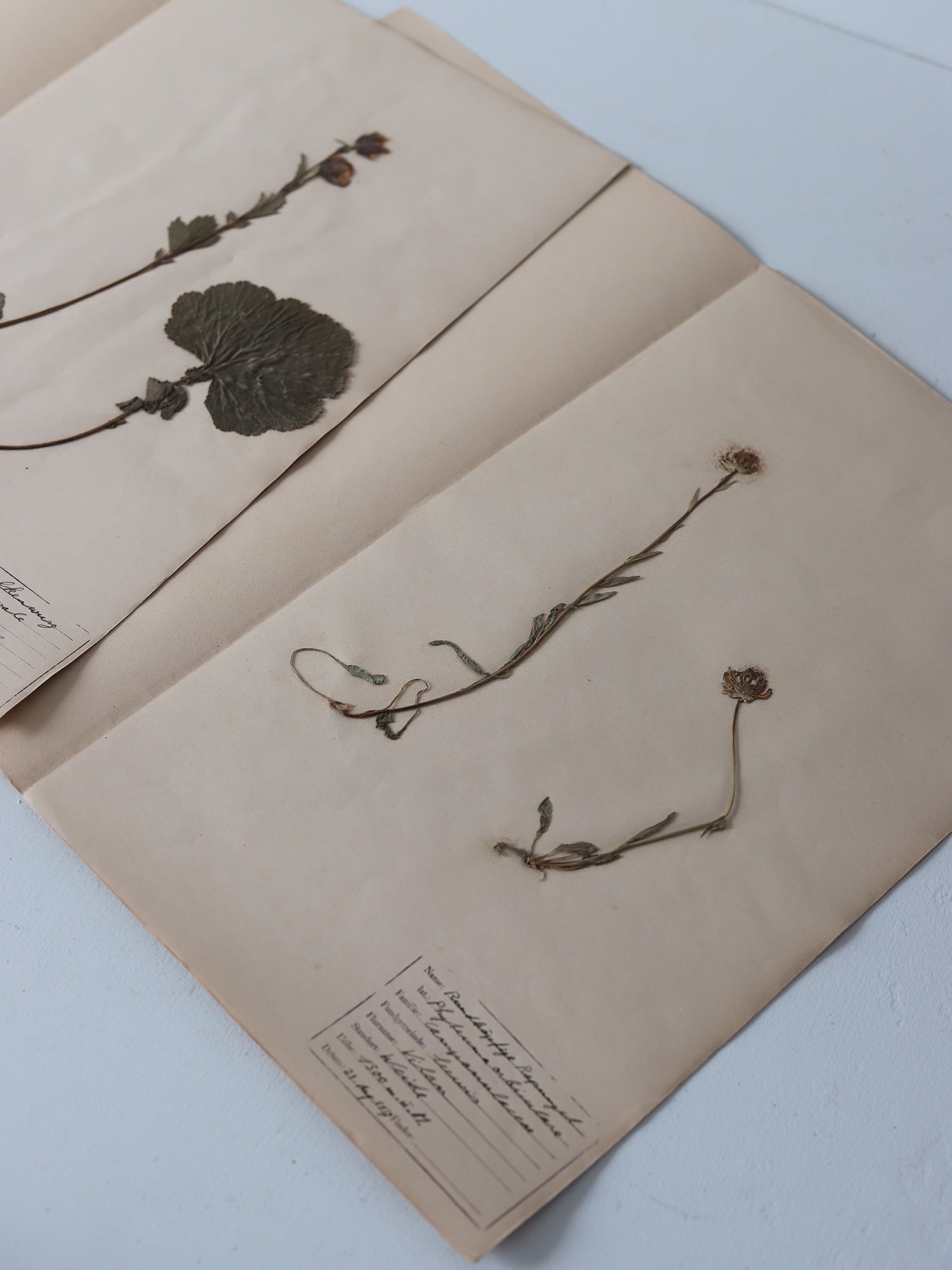 どれも繊細でとても美しいです。壁に並べてください。右下には植物の名前といつどこで誰がのラベル。