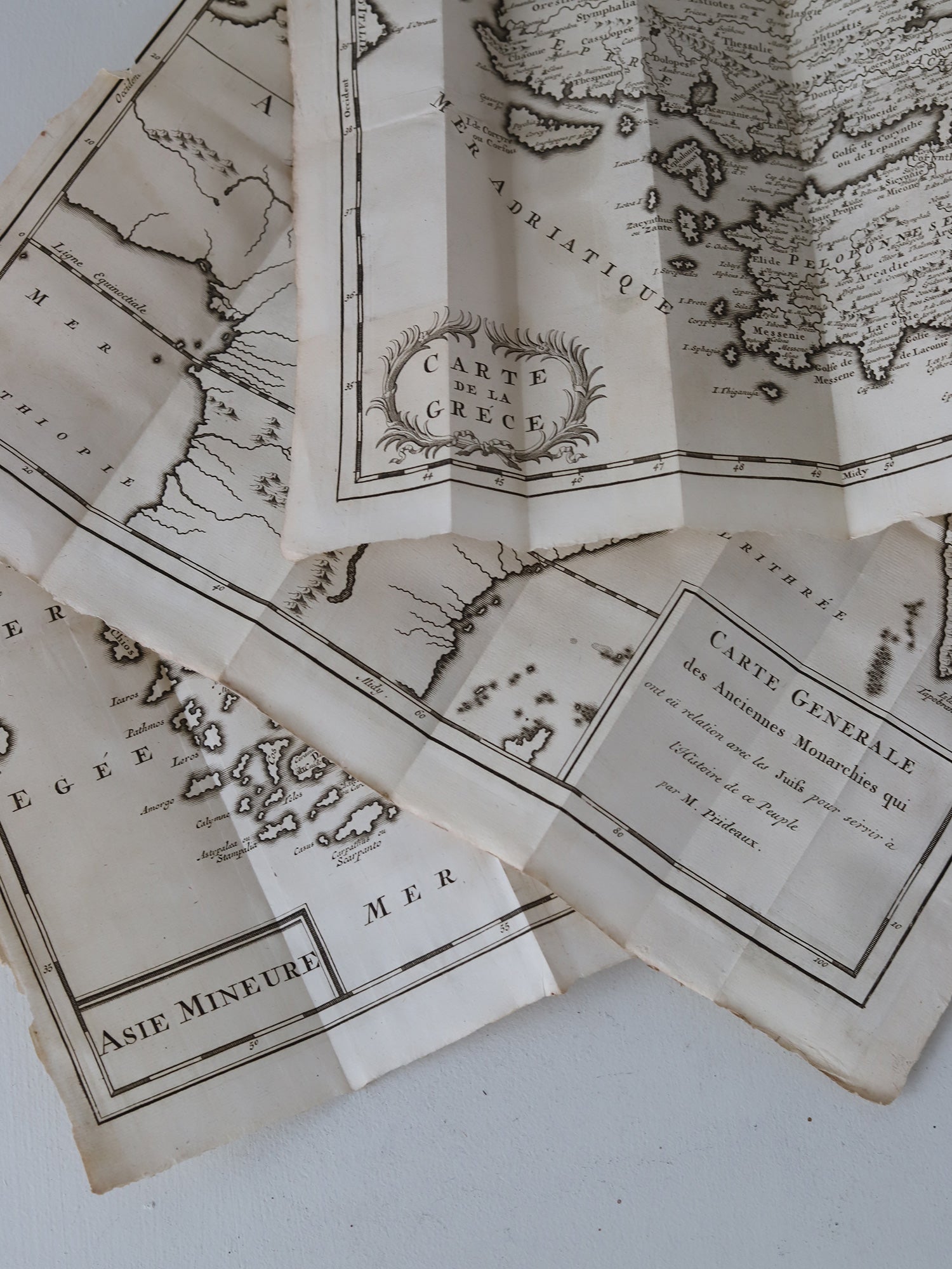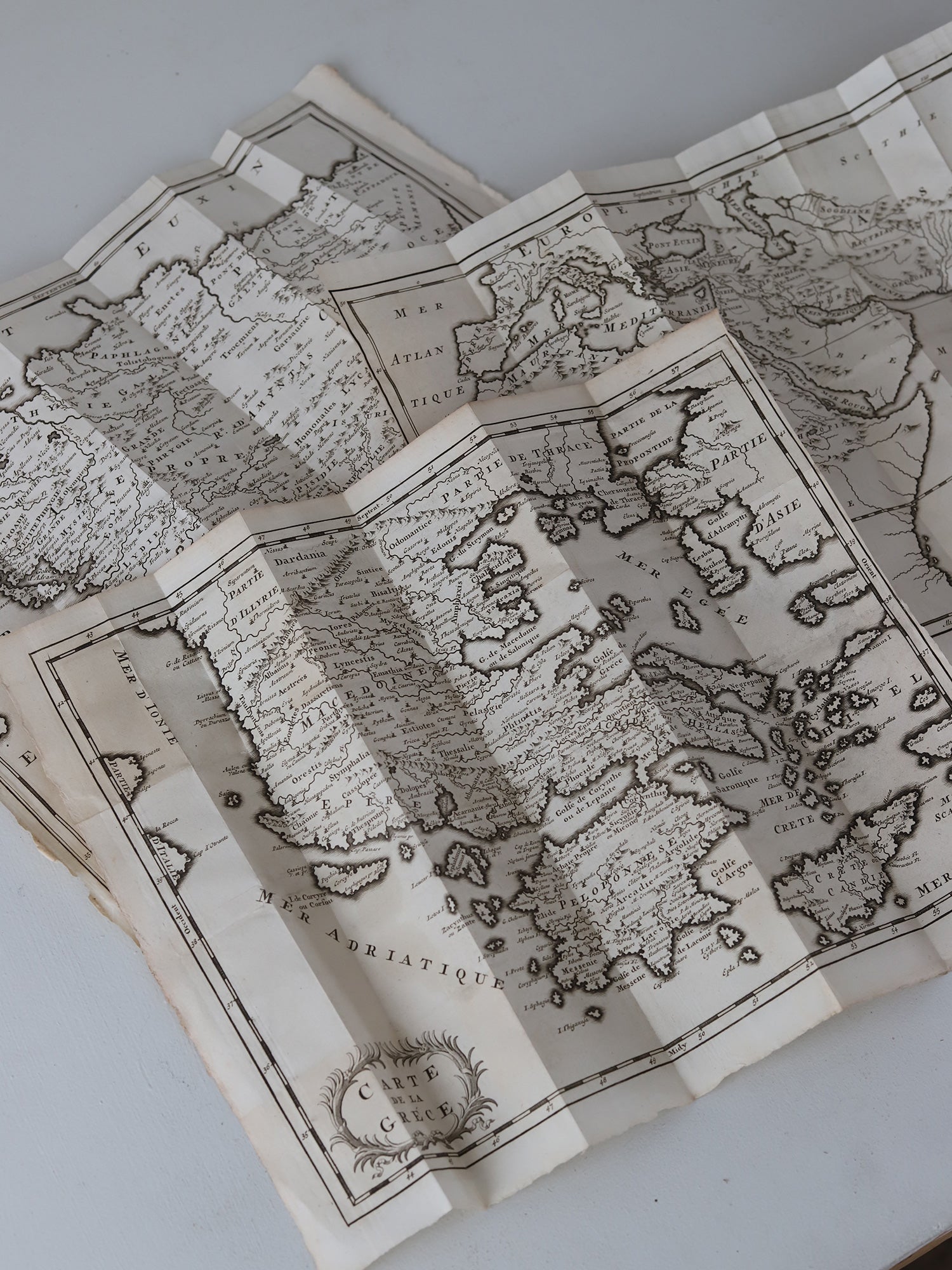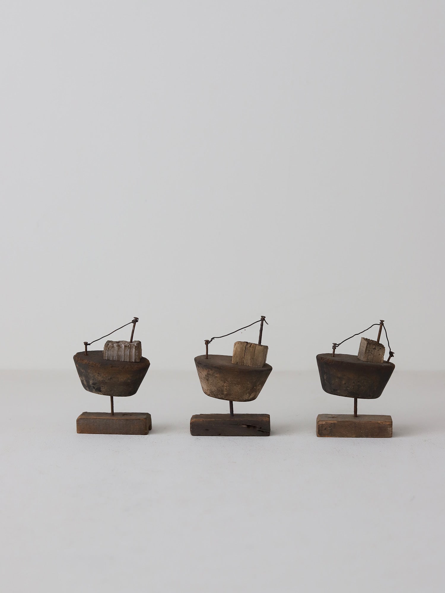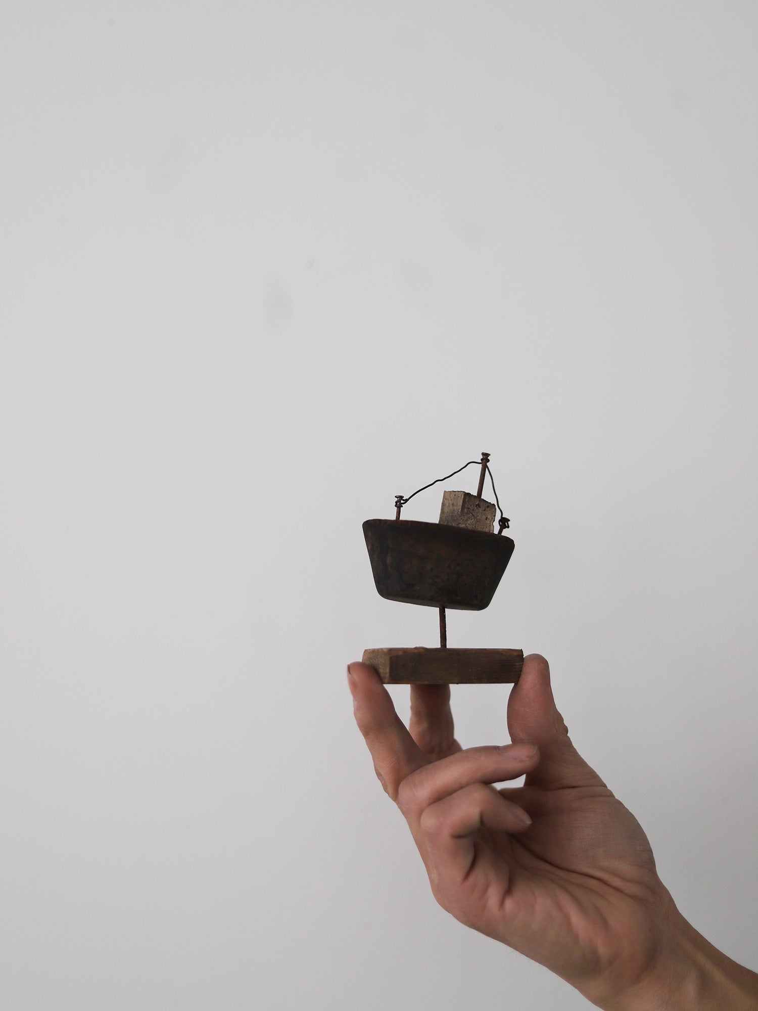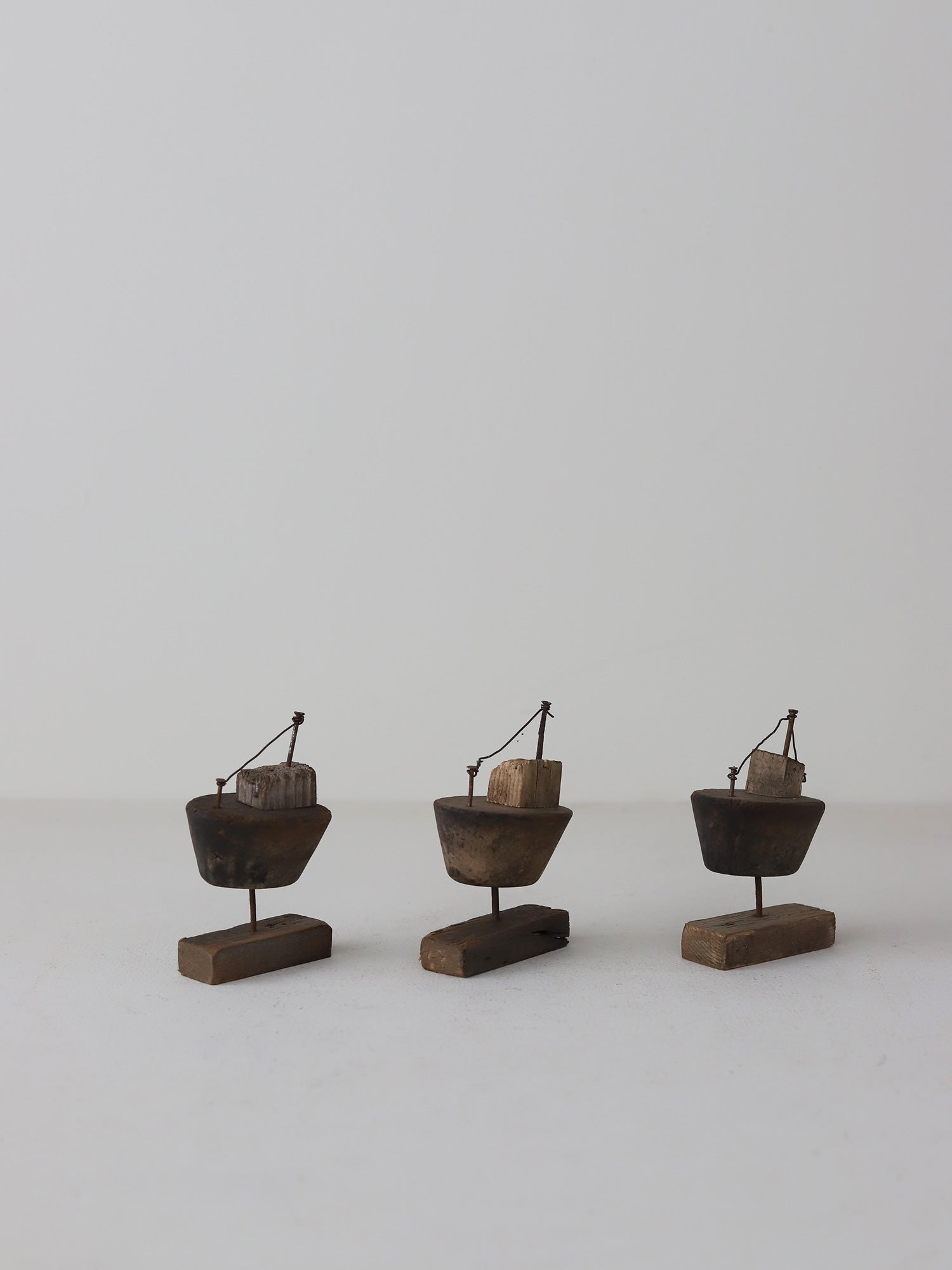 ボロな船と古い地図のセット。船はフランスで見つけたお菓子のモールド(船の胴体部分)を使って作りました。とてもかわいらしい船です。渋い地図は中世の航海を感じさせます。船と地図を見ながら航海に思いを巡らせてください。