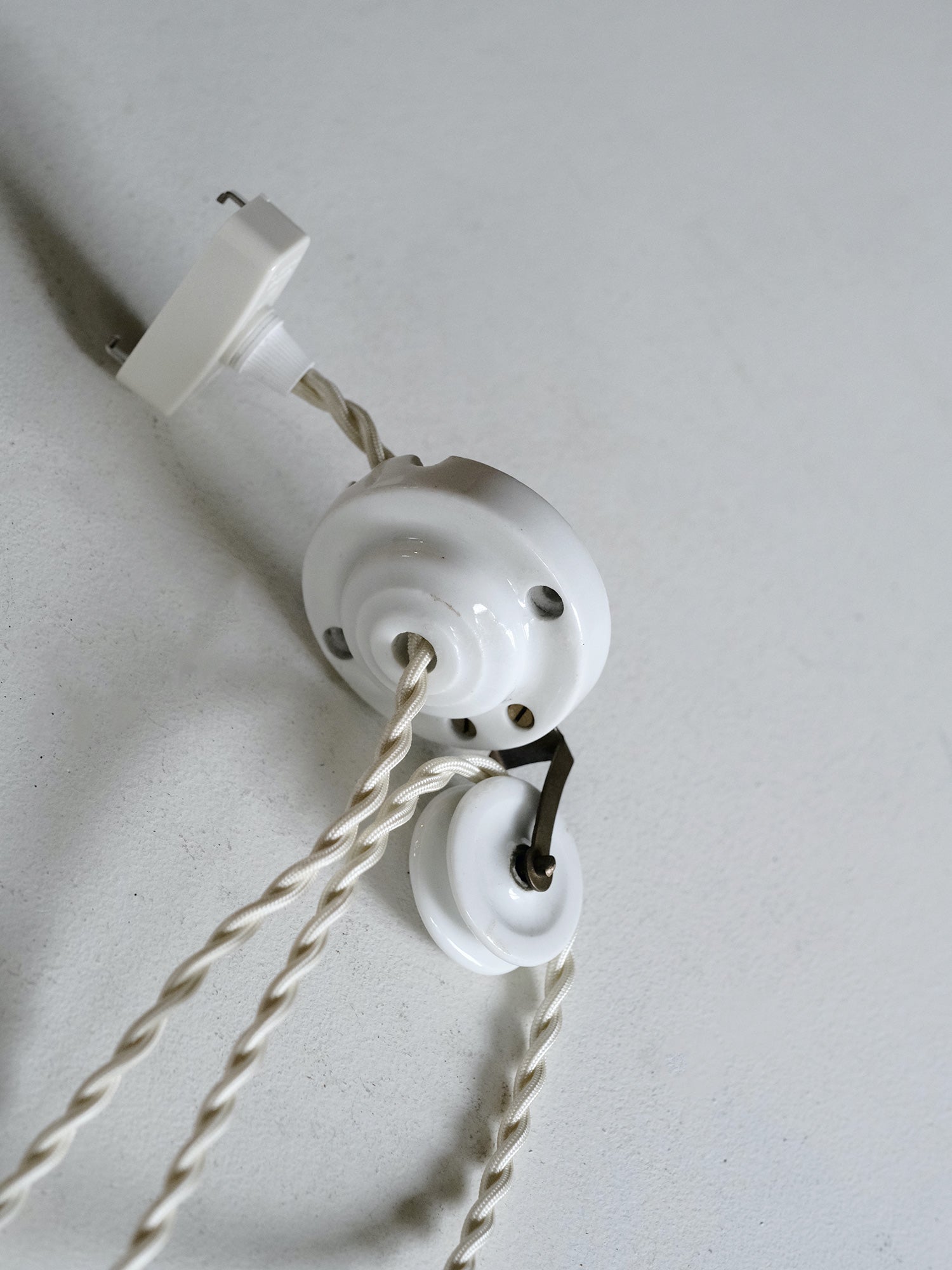 - 日本製の新しい白い布撚りコード、シーリングでなおしてあります。