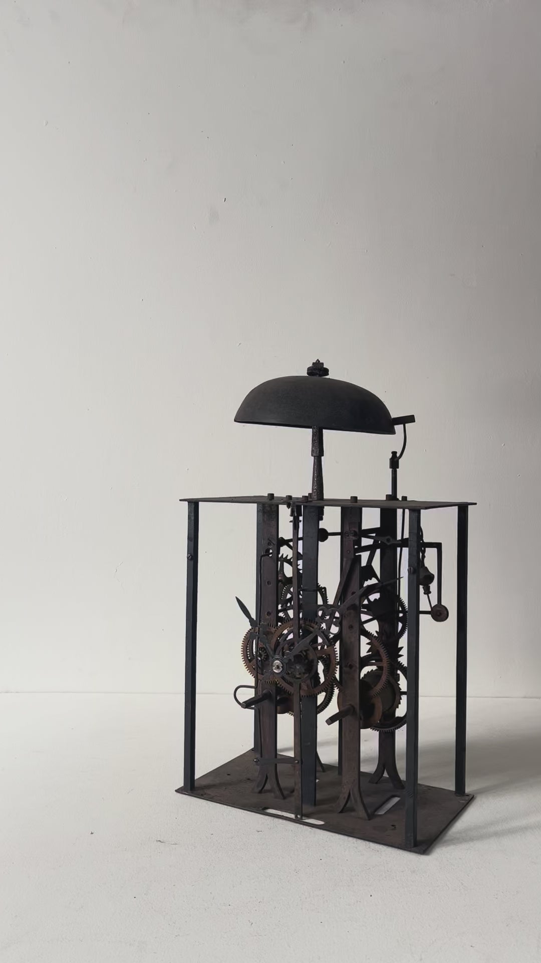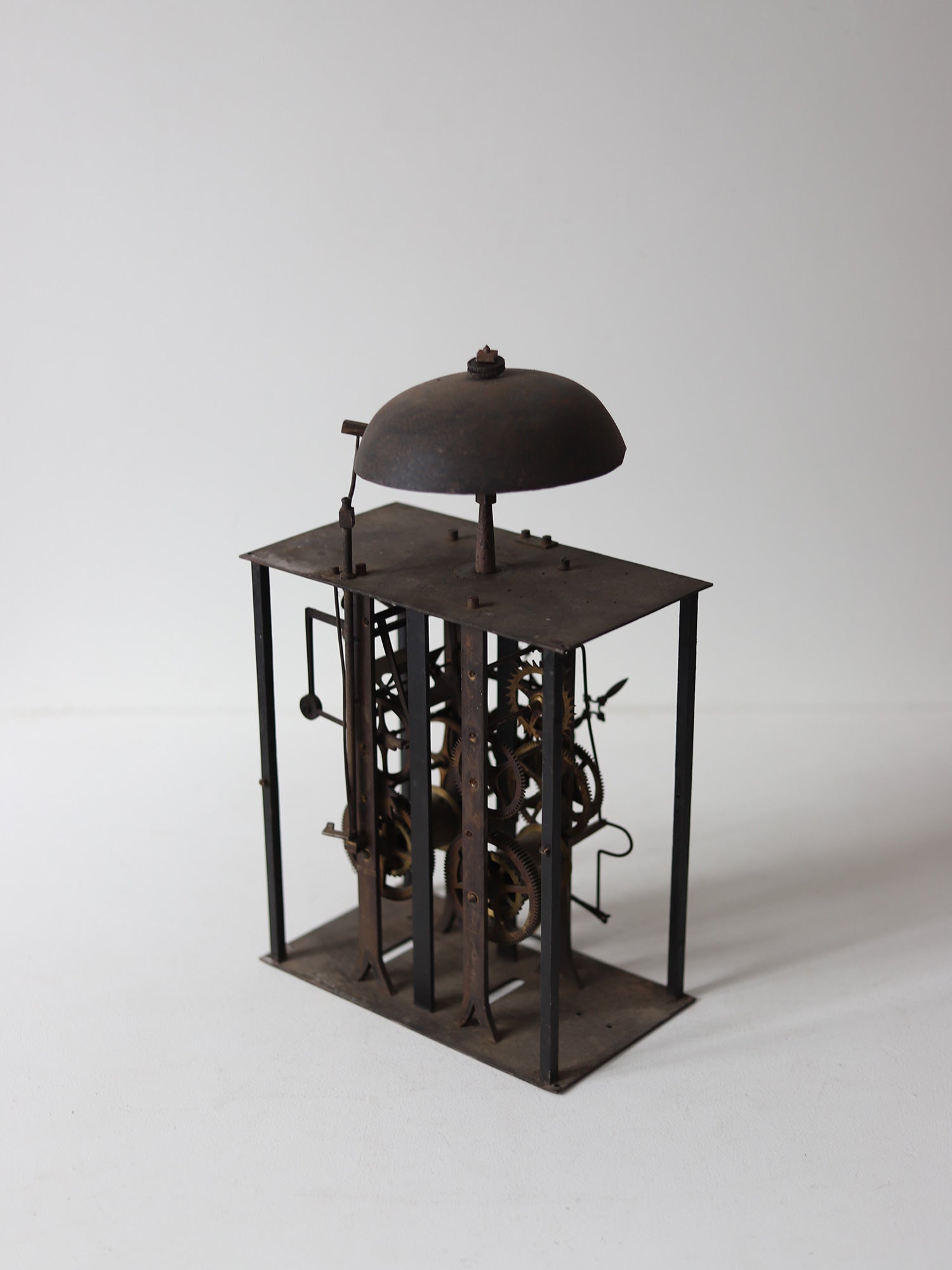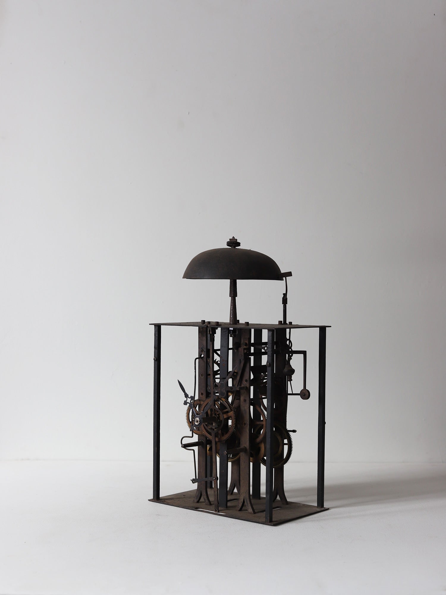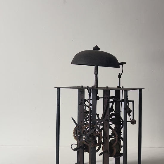 フランスの古い時計のムーブメント。様々な装飾物を全て取り払って分解し、組み直して長針、分針をつけました。重厚感があり、かつ繊細さを感じられ、とても美しいです。指で回すと針は動きますが、時計としての機能はございません。ディスプレイ用としてご検討ください。静かに佇みます。