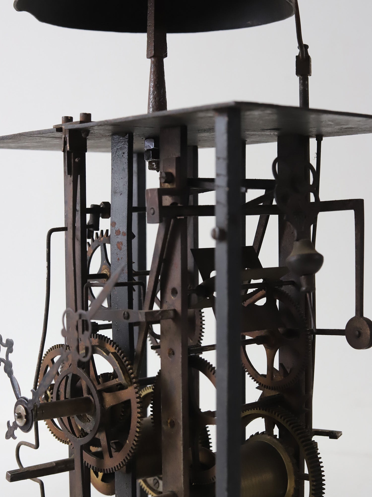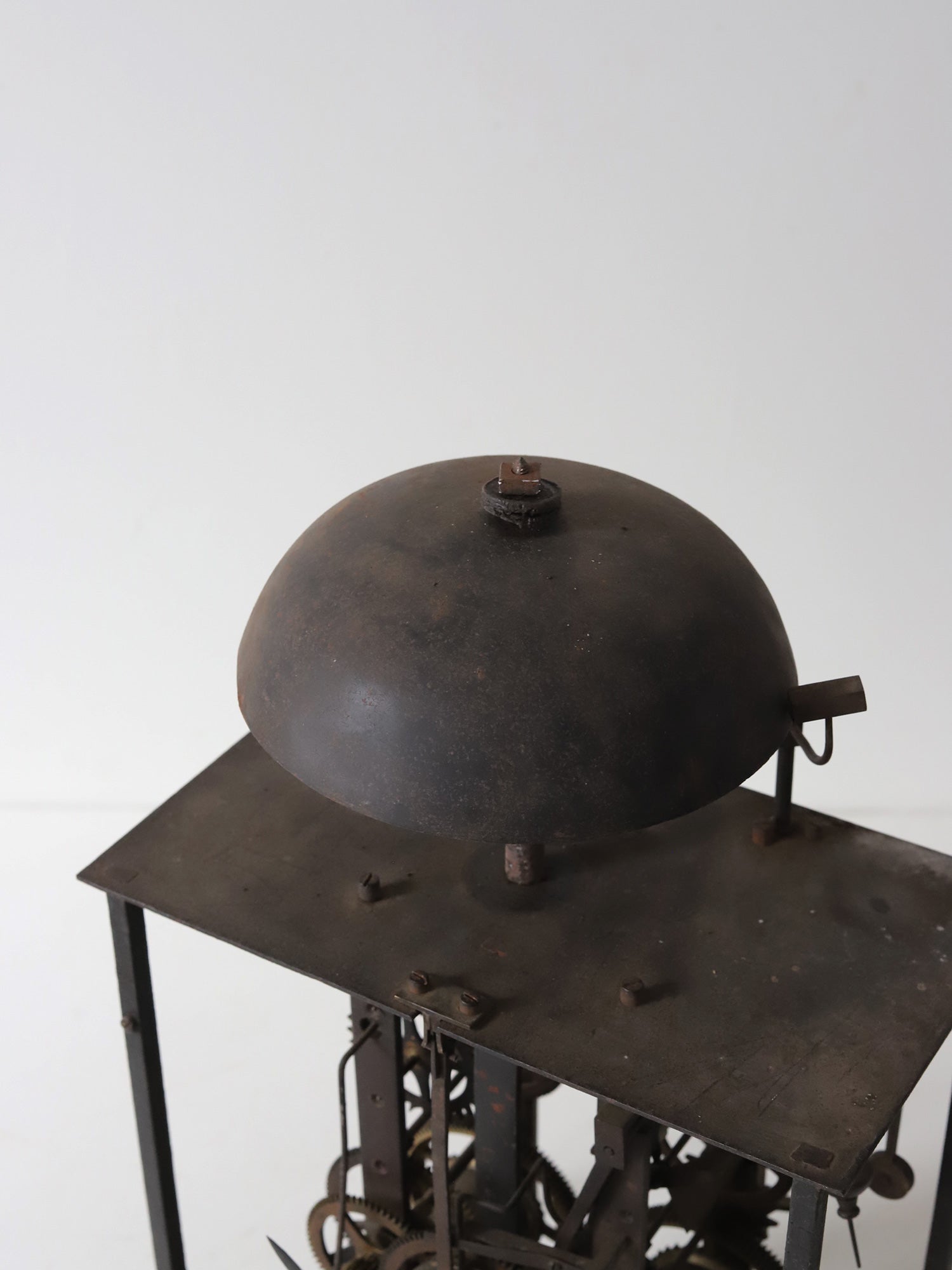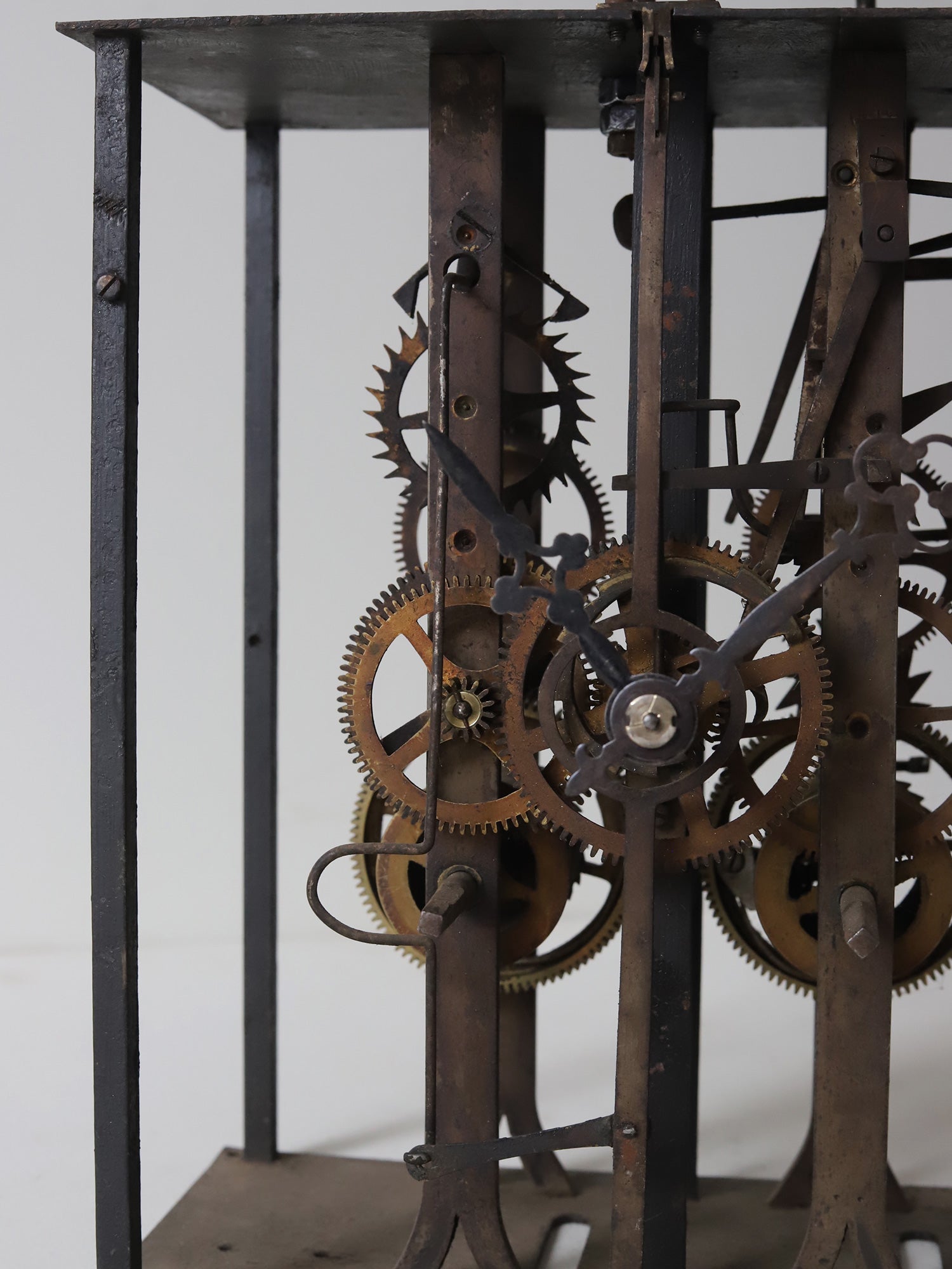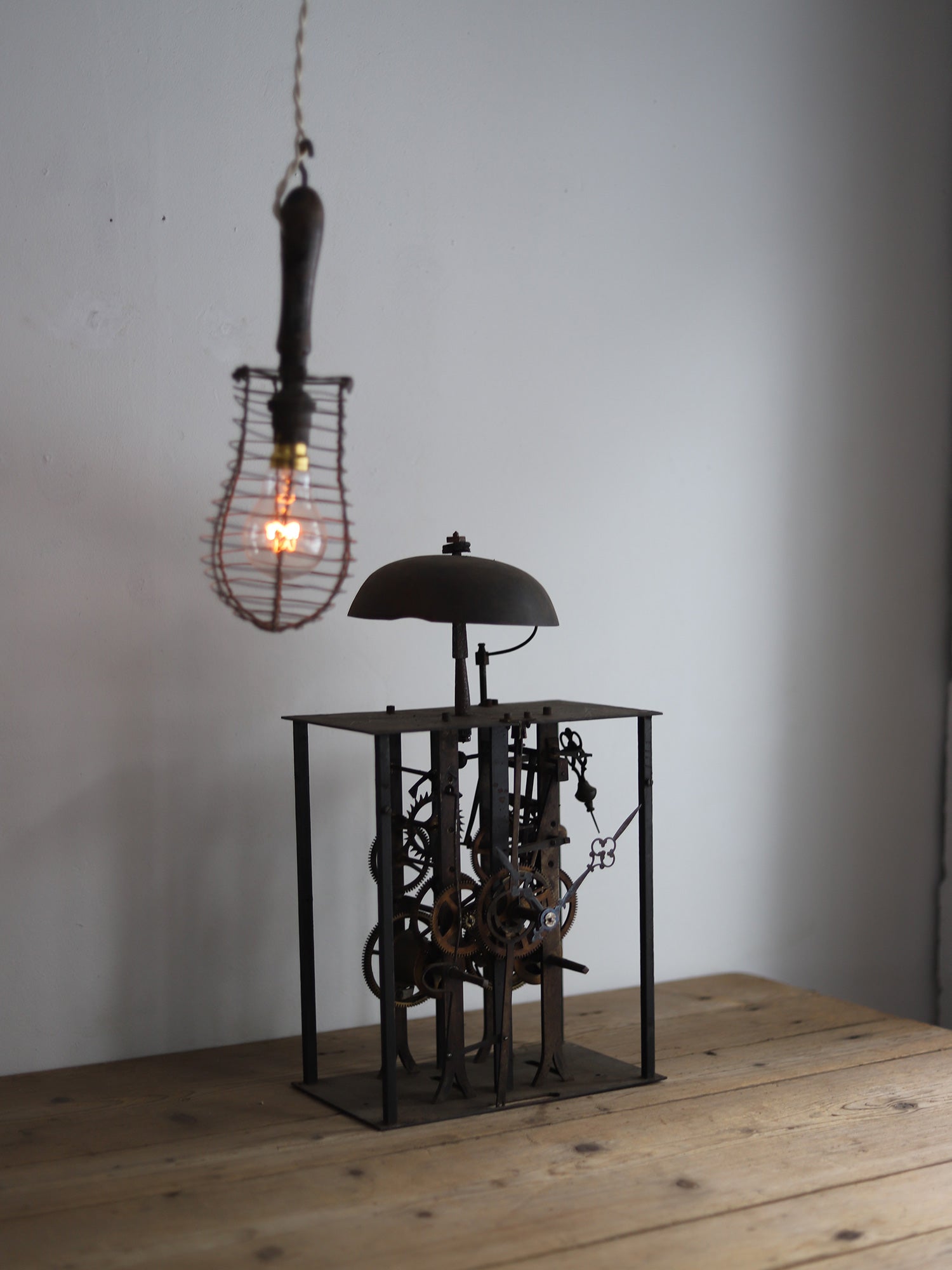 フランスの古い時計のムーブメント。様々な装飾物を全て取り払って分解し、組み直して長針、分針をつけました。重厚感があり、かつ繊細さを感じられ、とても美しいです。指で回すと針は動きますが、時計としての機能はございません。ディスプレイ用としてご検討ください。静かに佇みます。